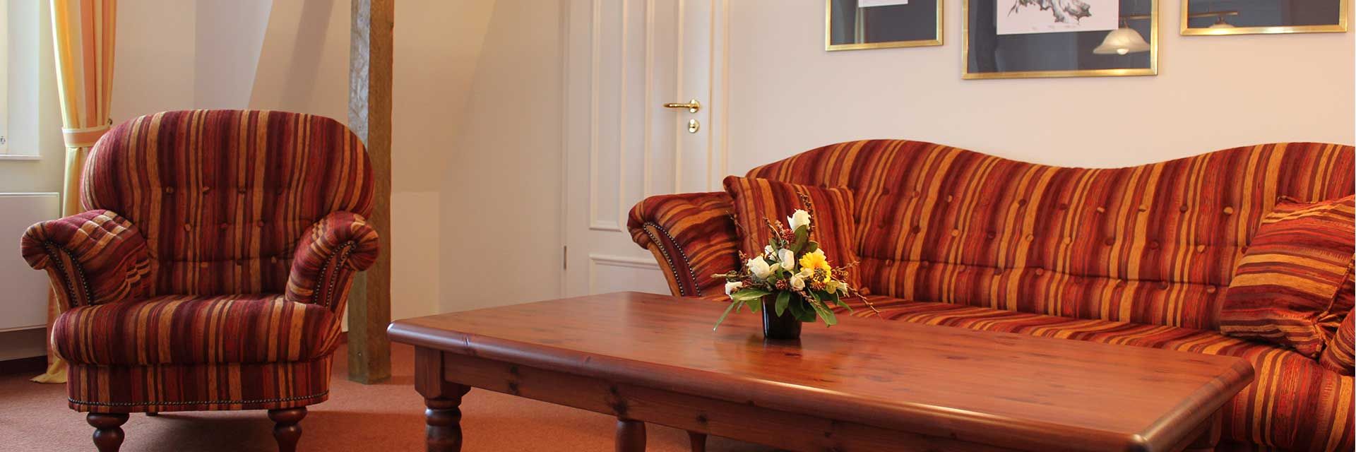 Unsere Suiten – viel Raum zum Träumen, Entspannen, Wohlfühlen. Wir bieten Ihnen unsere traumhafte große Suite mit Meerblick in der oberen Etage des Haupthauses sowie zwei Juniorsuiten mit Balkon im neuen Haus.